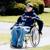 Before my accident I was involved in action sports for over10 years. Being involved in BMX, skateboarding, and snowboarding since the age of nine my life never had a dull moment. After my injury life seemed to stand still, I was no longer able to participate in the sports I loved and have been apart of for more than half my life. As time went on, I soon came to realize that I wanted to utilize my wheelchair to the best of my ability and beyond. Taking trips or rolls as I call them from location to location became a norm. After a 3 hour roll to my cousin’s house in 2001 I decided that in 2002 I would roll to Lake Geneva Wisconsin which was 80 miles from my hometown. In the summer of 2002 I completed that 80 mile adventure in 3 days; a total of 17 hours to complete. In the fall of 2002 I decided to take my wheelchair to the next level, airborne. I had been jumping off curbs since leaving rehab, but never thought to put a ramp into the equation. I decided to call a few buddies of mine and with their help we constructed a ramp fit to my satisfaction. I set myself up for the launch and took off. |